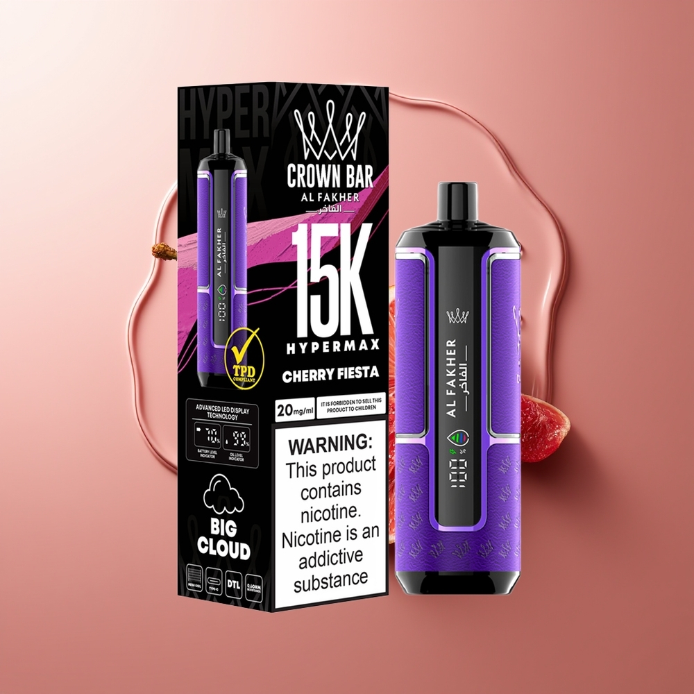 Uus Al Fakher Crown Bar 15K Hypermax Ühekordselt Kasutatav Vape Kit on loodud nautimaks suurepärast suitsetamiskogemust ilma kompromissideta. See on ideaalne valik nii algajatele kui kogenud suitsetajatele, pakkudes pikka kasutusiga ja ülima mugavuse.