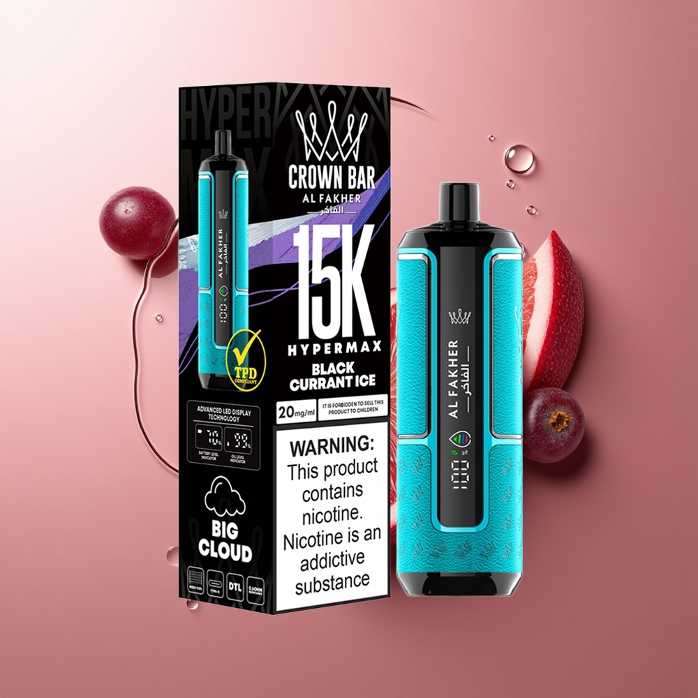 Uus Al Fakher Crown Bar 15K Hypermax Ühekordselt Kasutatav Vape Kit on loodud nautimaks suurepärast suitsetamiskogemust ilma kompromissideta. See on ideaalne valik nii algajatele kui kogenud suitsetajatele, pakkudes pikka kasutusiga ja ülima mugavuse.